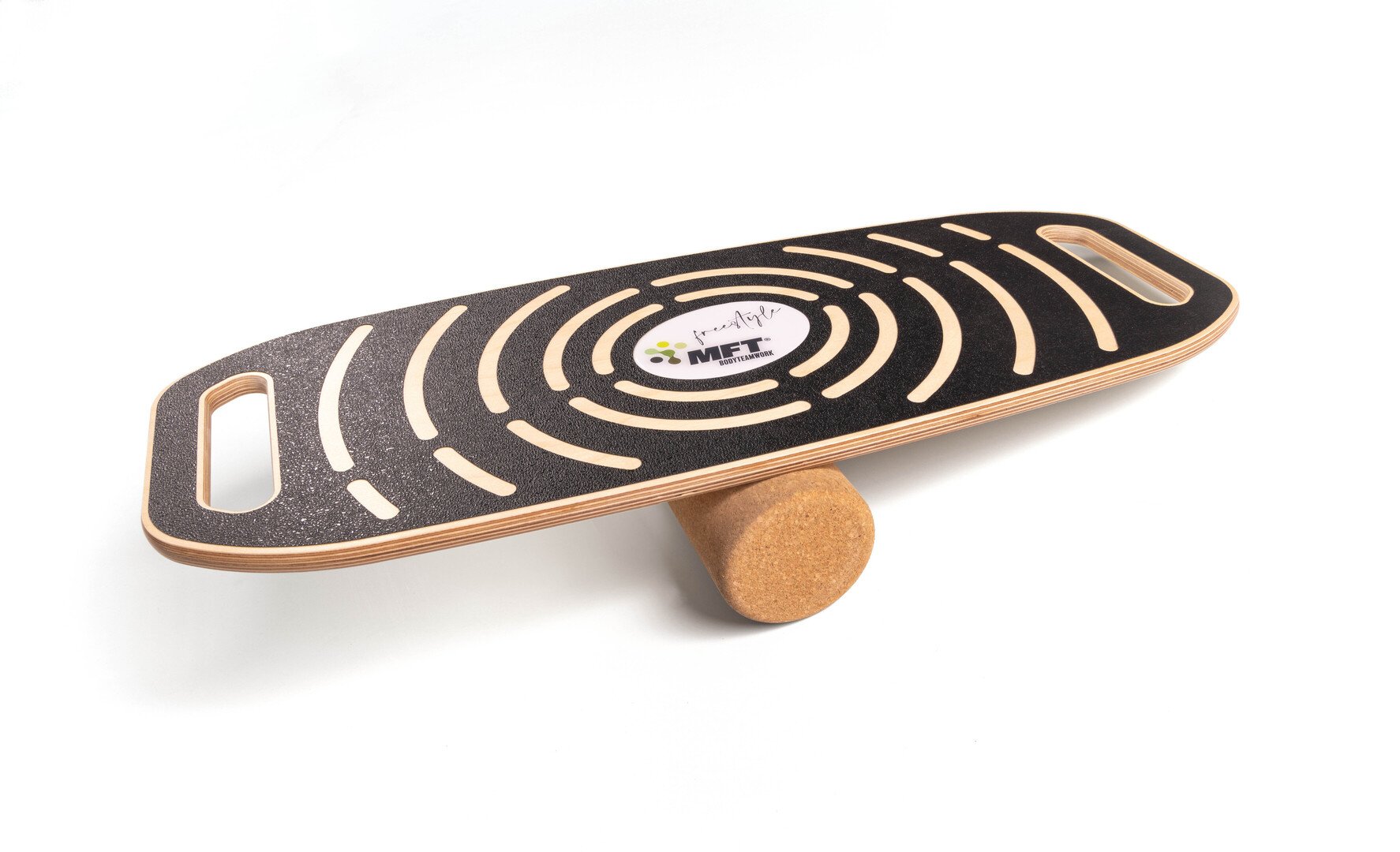 The MFT Freestyle balance board is made of wood and comes with a cork roller, offering countless combinations for training and tricks.